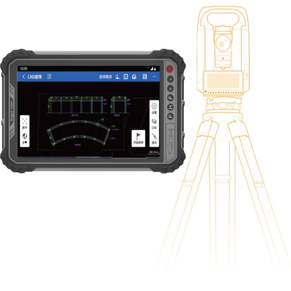rugged tablet and total station used for mapping and surveying