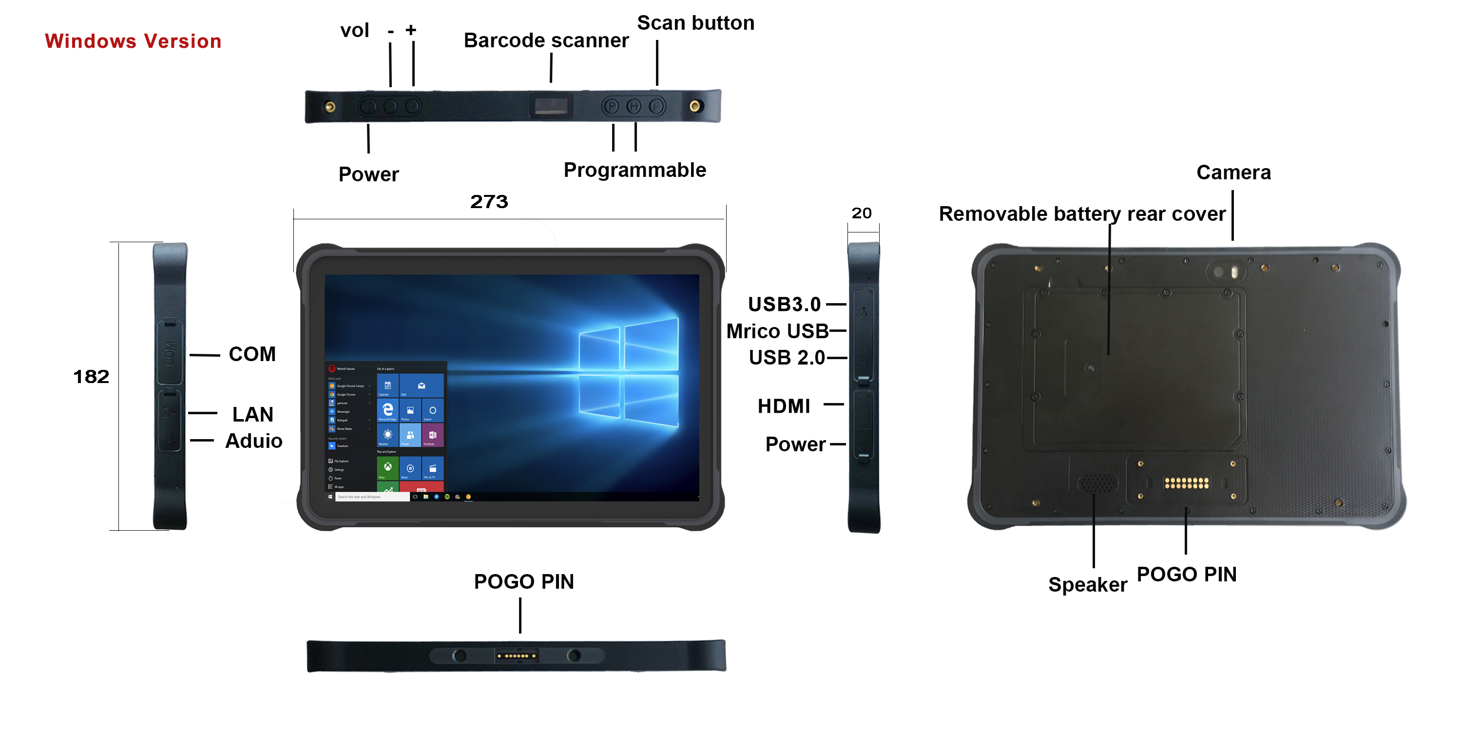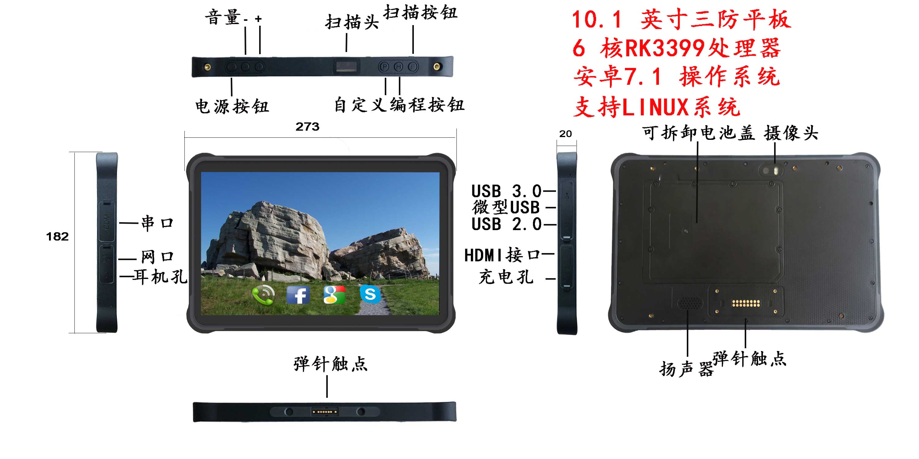| Pogopin 外接顶针 | 16PIN | 背部 | USB, RS232 |